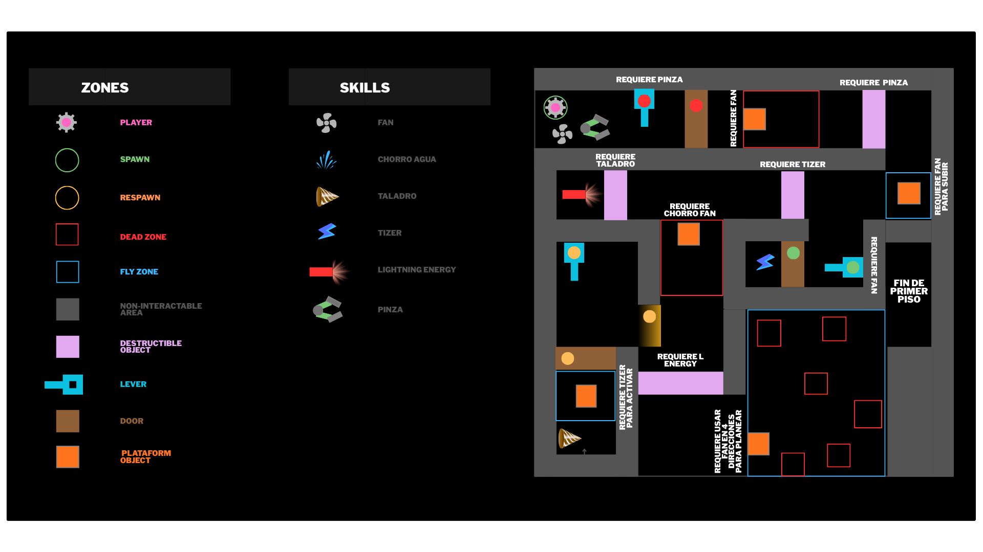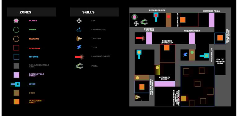 Plataformas móviles y objetos que se activan con habilidades.
