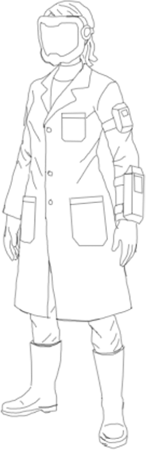 JE-0 equipa herramientas en puntos específicos de su cuerpo (brazos, espalda, etc.).