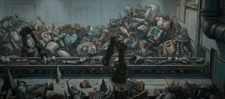 Qué se toma: Narrativa sin presencia humana directa y construcción de mundo mecánico con fuerte identidad visual.