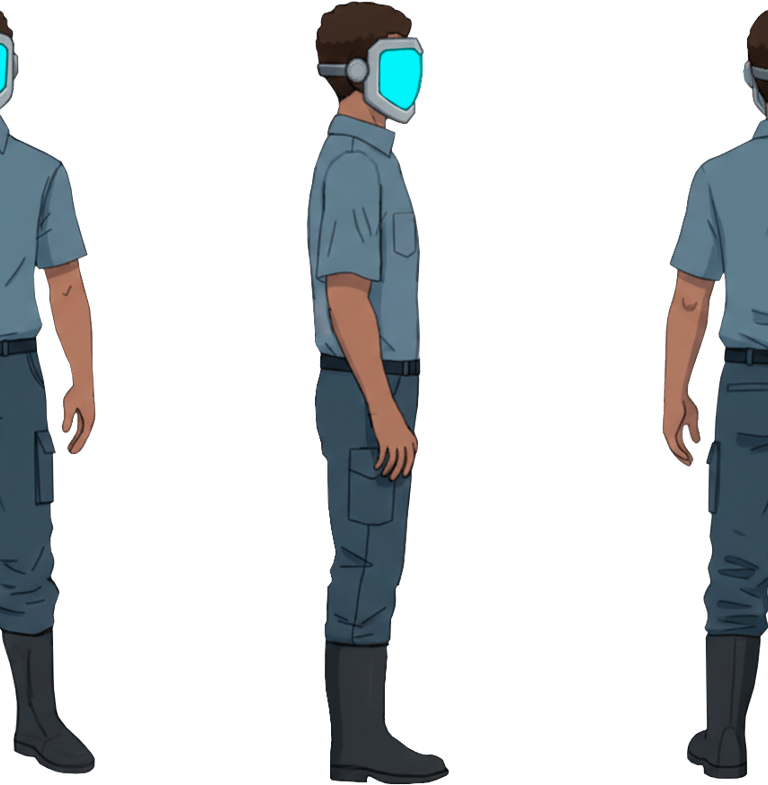 La dirección visual del proyecto se apoya en una estética industrial posthumana, combinada con un enfoque estilizado medium-poly que favorece la legibilidad y el rendimiento.